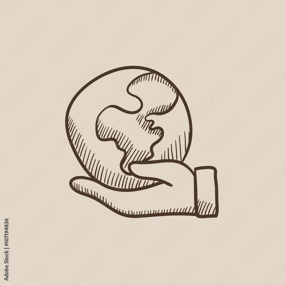 Poster Hand Holding The Earth Sketch Icon Nikkel Art