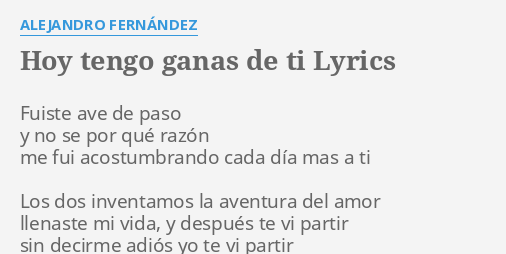Hoy Tengo Ganas De Ti Lyrics By Alejandro Fernandez Fuiste Ave De Paso
