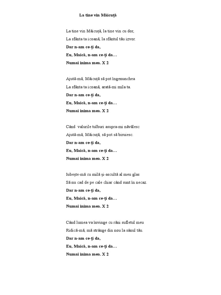 La Tine Vin Maicuta Versuri Pdf