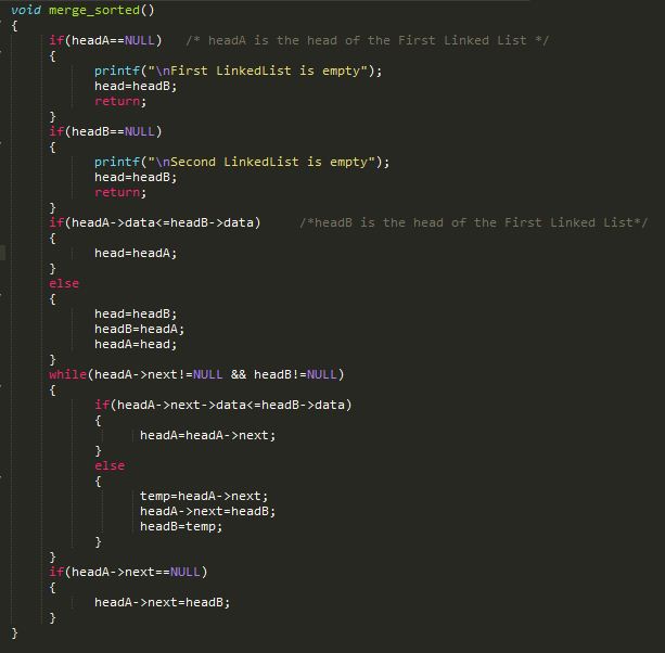 C Program To Merge Two Sorted Linked List Non Recursive Approach Plexinfo