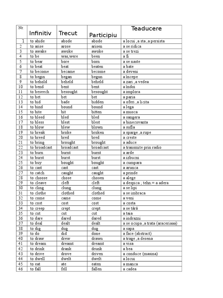 Lista Verbe Neregulate Engleza Traduse Qvndvzgxewnx