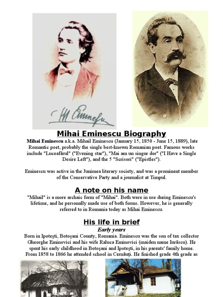 Mihai Eminescu Interesting Stories About Famous People Biographies Humorous Stories Photos And Videos
