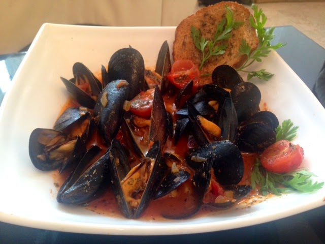 Chef De Cuisine Puiu Oana Mihaela Midii Proaspete Cu Sos De Vin Alb Si Rosii Cherry Busuioc Si Usturoi Impreuna Cu Paine De Secara Prăjită Cu Ulei De Măsline Si Oregano