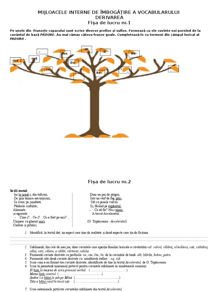 Gramatică Derivarea Mijloc Intern De Imbogăţire A Vocabularului