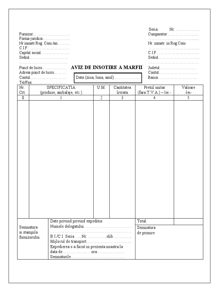 Aviz De Insotire A Marfii Formular Word Formulare Tipizate Gratuite