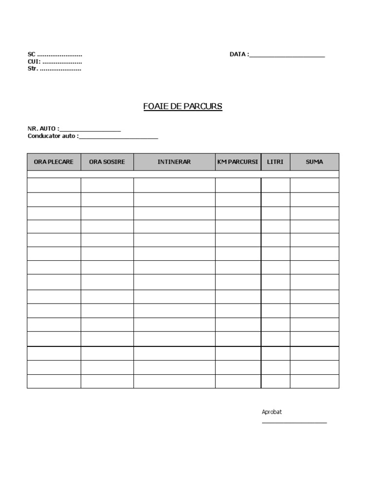Model Foaie De Parcurs