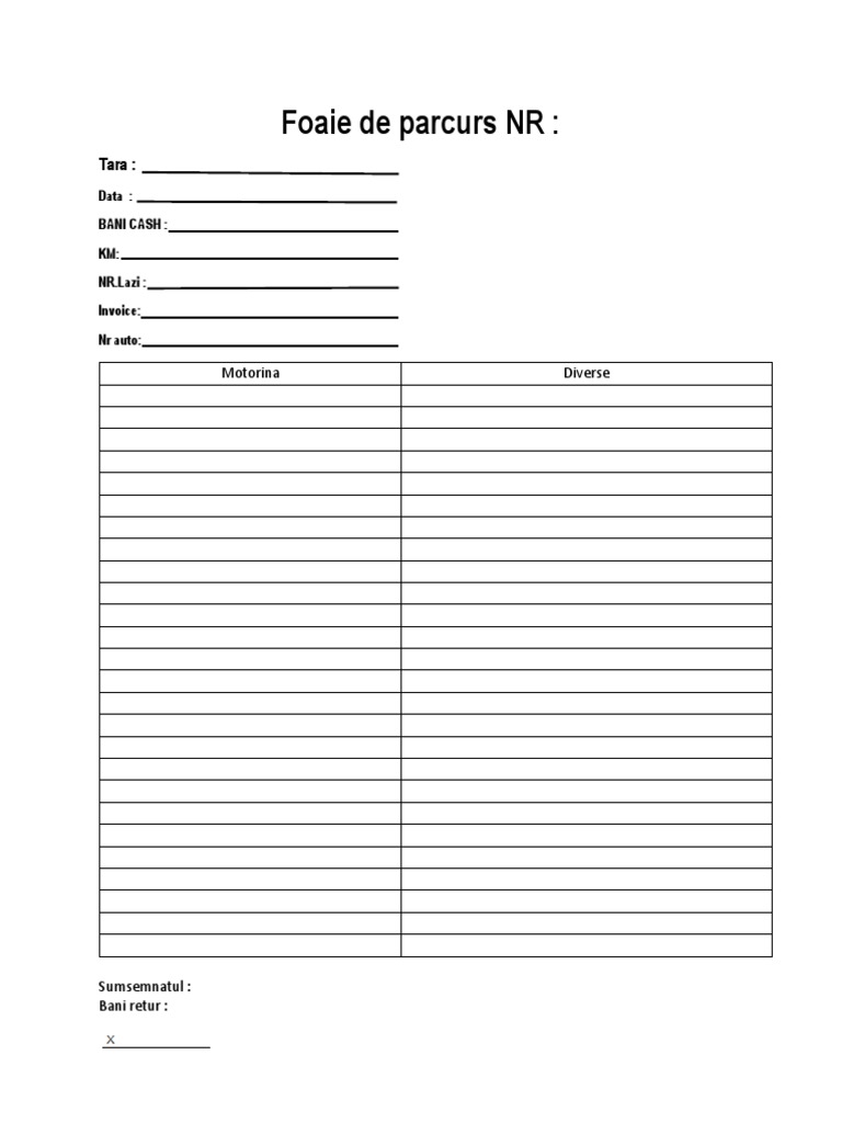 Completare Foaie De Parcurs Pdf Document