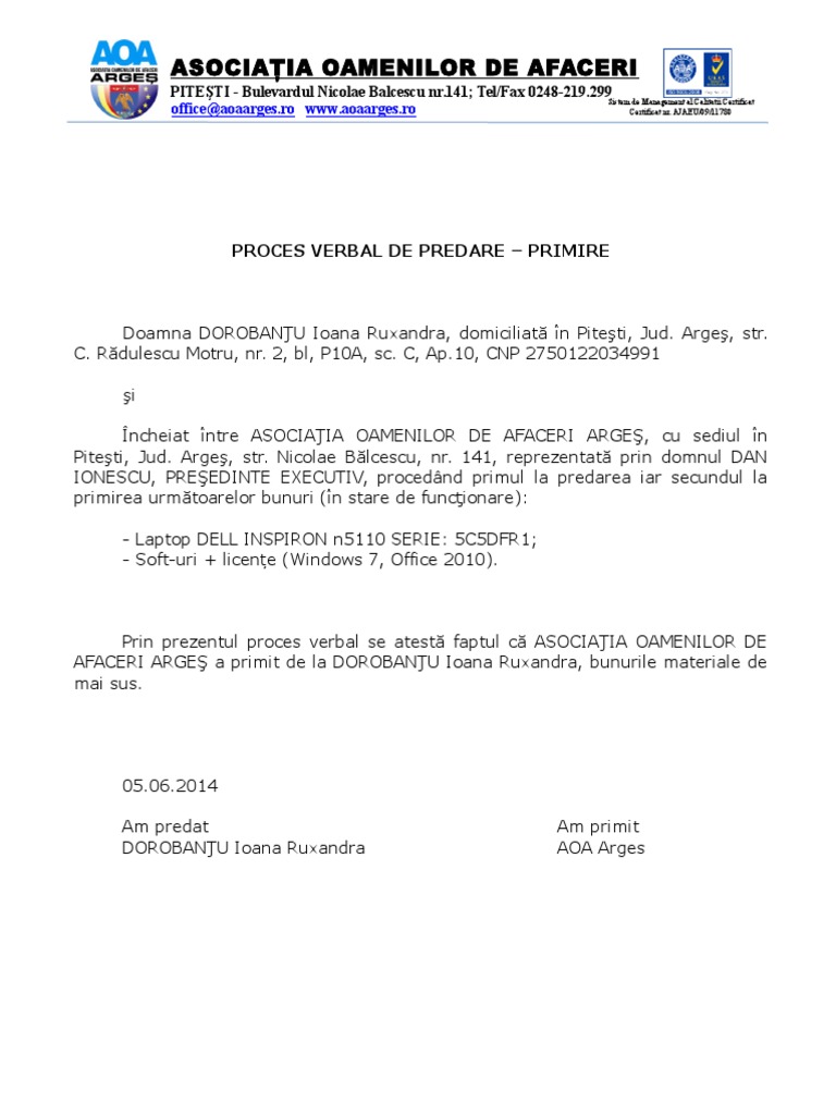 Doc Proces Verbal Predare Primire Acristinei Andreea Academia Edu