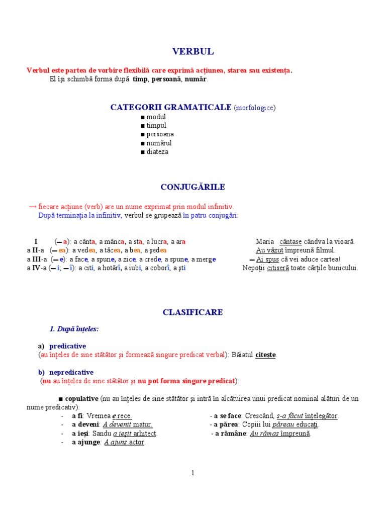 Doc Verbul Clasa 5 Moduri Si Timpuri Mărioara Moti Academia Edu