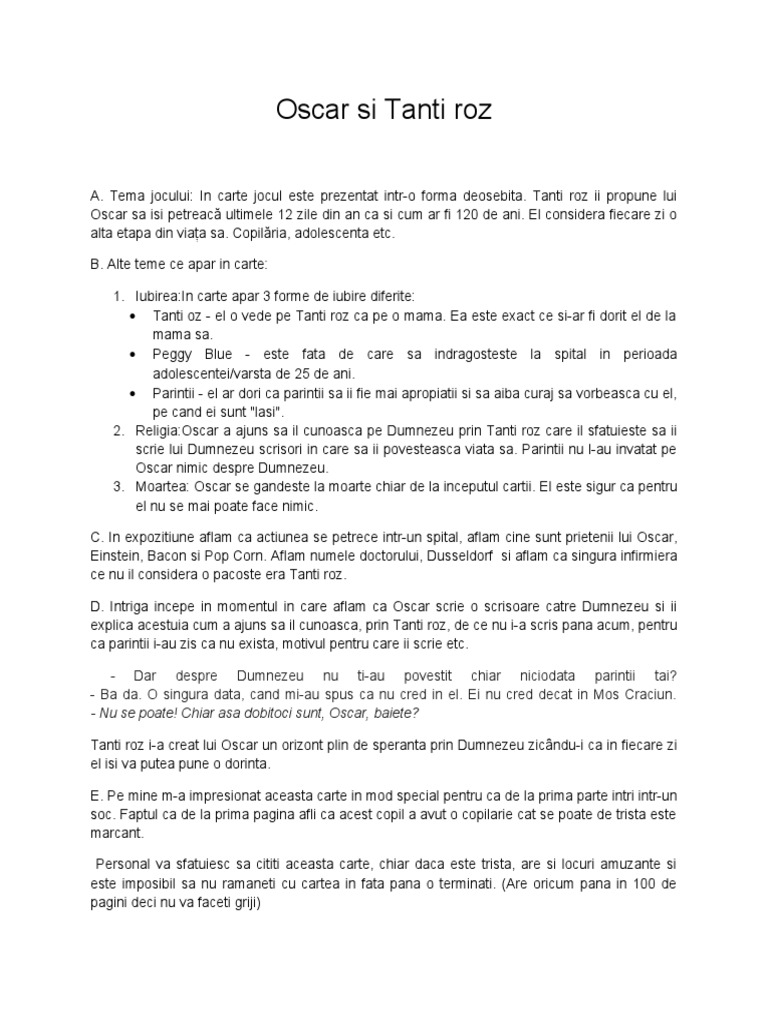Doc Oscar și Tanti Roz Docx Carmen Dumitru Academia Edu