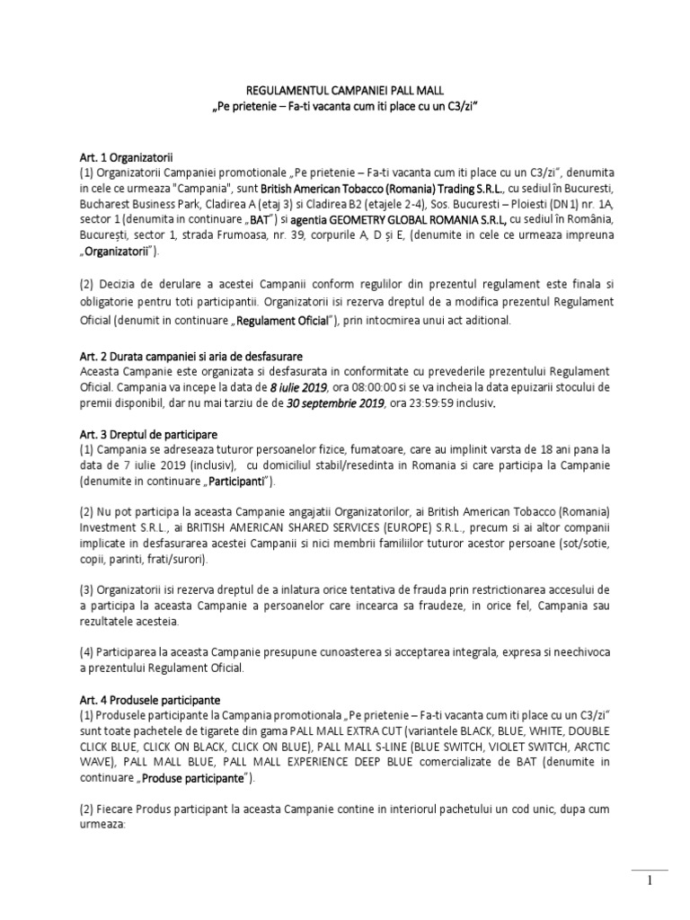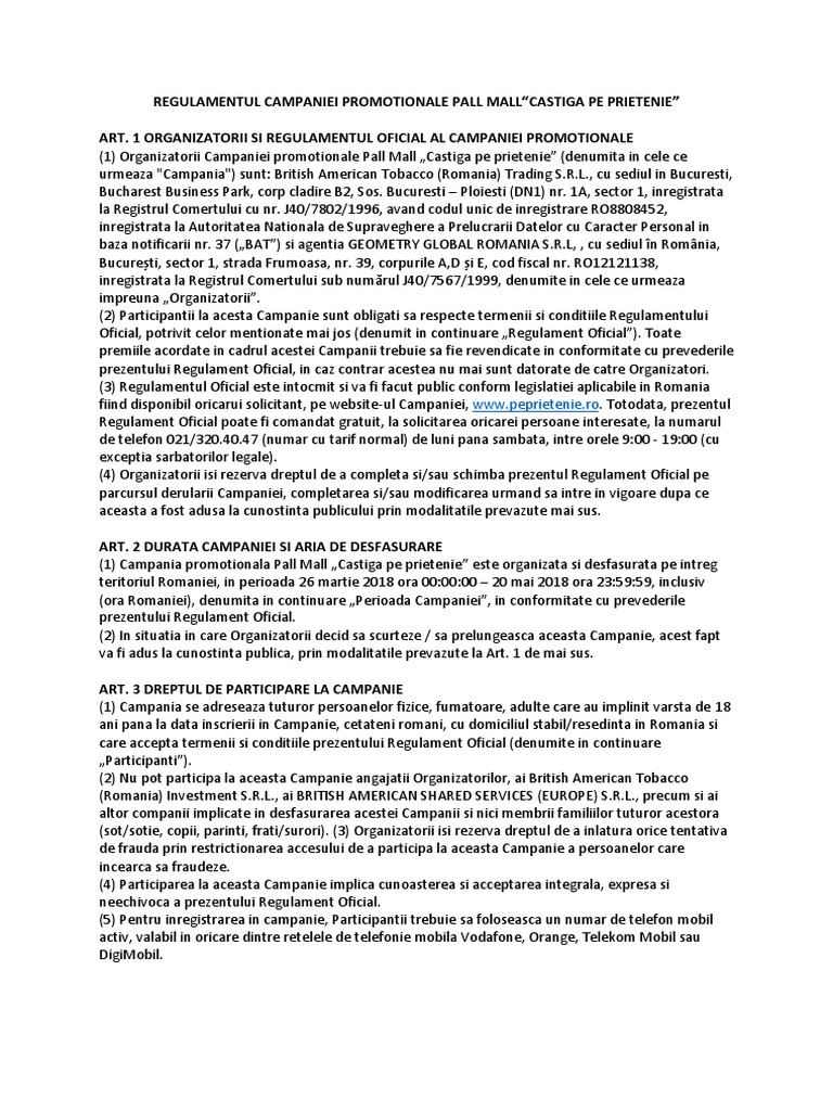 Regulament Pall Mall Peprietenie Fa Ti Vacanta Cum Iti Place Cu Un C3 Pe Zi Pdf