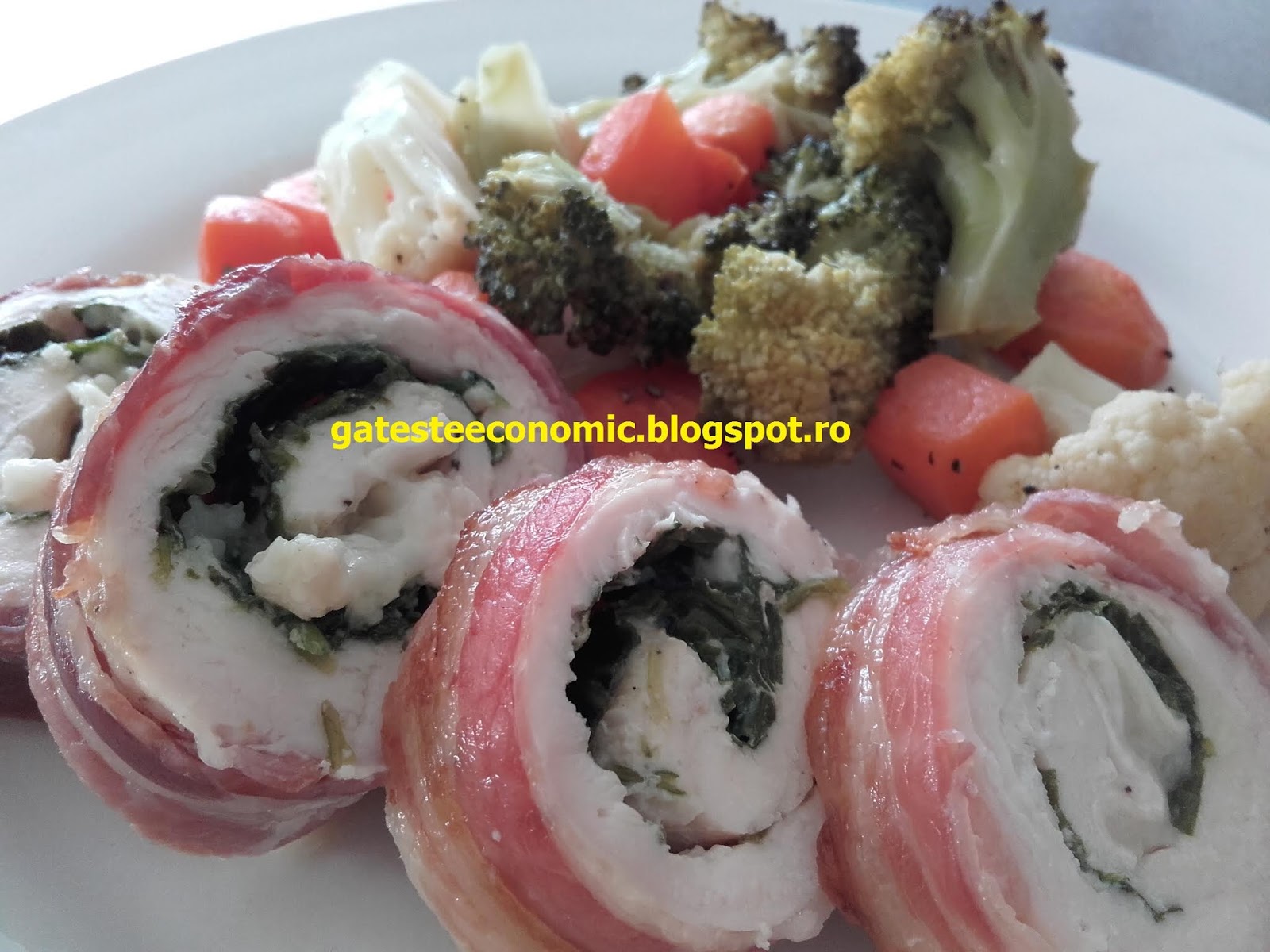 Gateste Economic Piept De Pui Umplut Cu Branza De Capra Si Spanac Invelit In Bacon