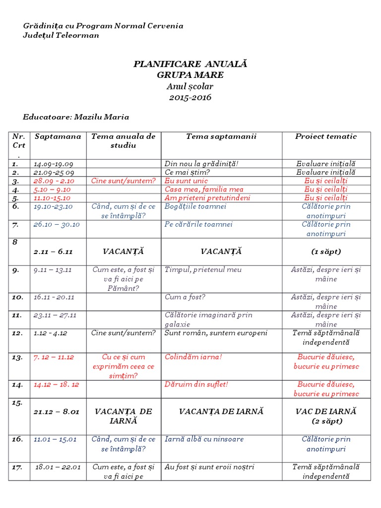 Planificare Anuala Grupa Mare Pdf