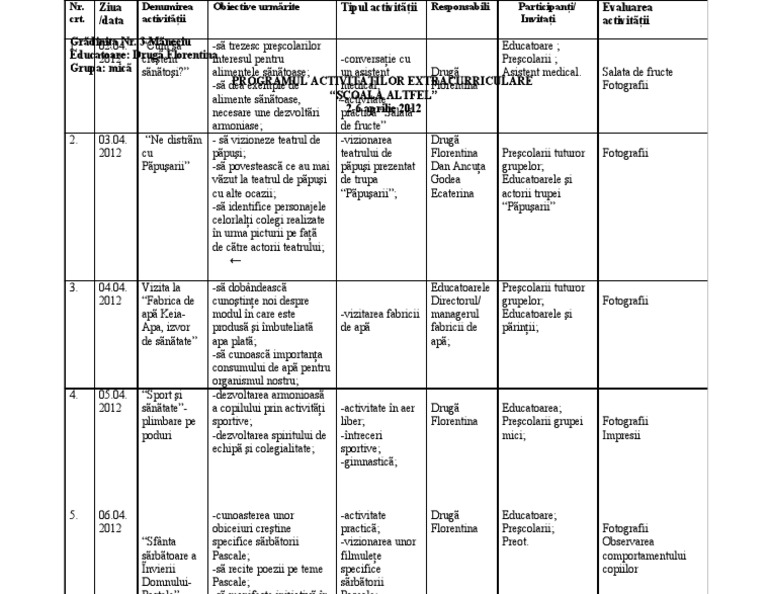 Planificarea Activitatilor Extracurriculare O Altfel De Gradinita