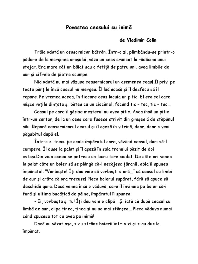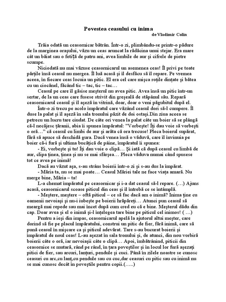 Povestea Ceasului Cu Inima Pdf Document